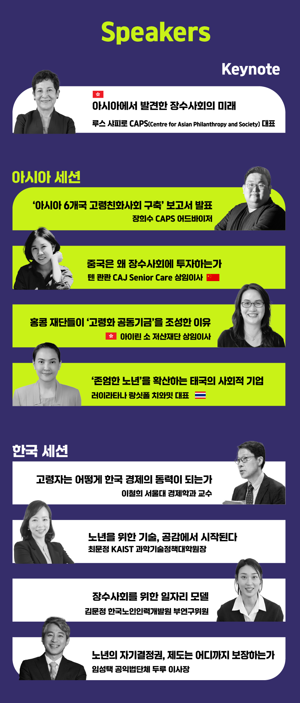 아시안 론제비티 포럼(ALF)은 기업, 비영리, 학계, 법조, 언론, 정부 관계자가 한자리에 모여 우리 사회가 직면한 초고령화 이슈를 론제비티(Longevity)라는 키워드 아래 입체적으로 다루는 국내 최초의 행사입니다.